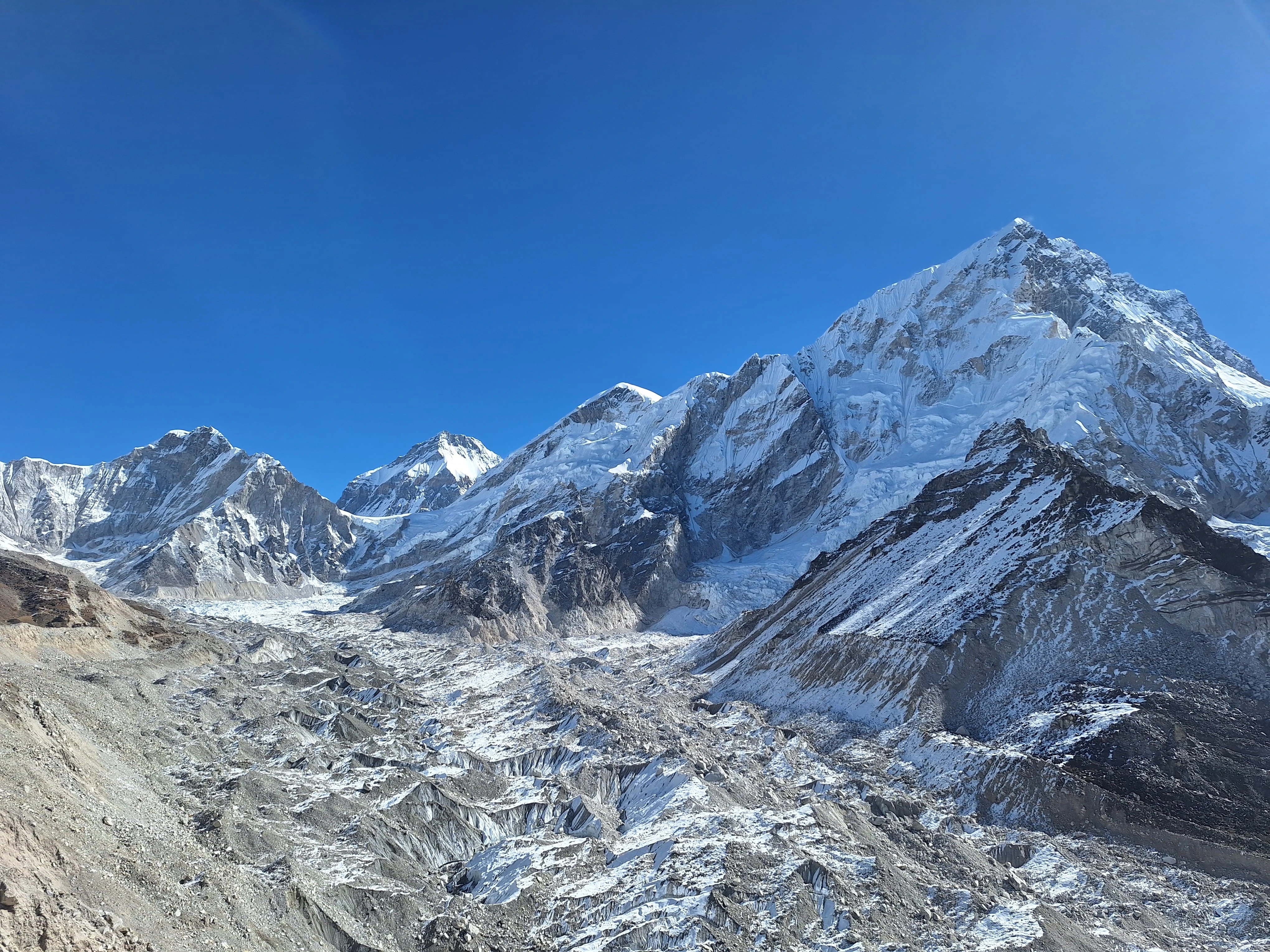 The route follows the Dudh Koshi River valley through Sagarmatha National Park, climbing steadily from Phakding (2,610m / 8,563ft) through Namche Bazaar (3,440m / 11,286ft), Tengboche (3,860m / 12,664ft), Dingboche (4,410m / 14,468ft), and Lobuche (4,940m / 16,207ft) before reaching Gorak Shep and Everest Base Camp at 5,364 metres (17,598ft). Along the way, the scenery transforms, from rhododendron forests alive with birdsong, to the stark, windswept moraines of the Khumbu Glacier where nothing grows and the only sound is ice shifting beneath your feet.