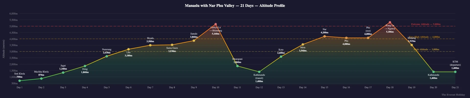 21-Day Manaslu + Nar Phu Valley Trek Overview